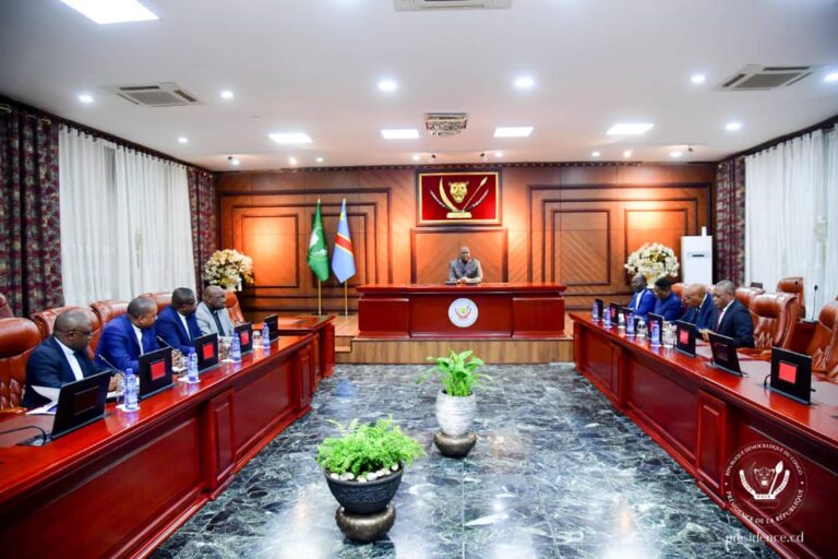 Le samedi 21 juin 2025 à la Cité de l’Union Africaine, le Président Félix-Antoine Tshisekedi Tshilombo a reçu officiellement la délégation conjointe de la CENCO et de l’ECC, Conduite par le Révérend Dr André-Gédéon Bokundoa-Bo-Likabe, Président national de l’ECC. La délégation comprenait également Mgr Donatien Nshole, Secrétaire général de la CENCO, et le Pasteur Eric Nsenga, Secrétaire général de l’ECC et Monsieur l’abbé Georges Kalenga, 1er Secrétaire Général adjoint de la CENCO. Porteuse du rapport des consultations, ces responsables religieux ont présenté au Président de la République le rapport des consultations nationales et internationales qu’ils ont menées dans le cadre du Pacte Social pour la Paix et le Bien-Vivre Ensemble en République démocratique du Congo. Selon les participants, cette rencontre de haut niveau, était empreinte d’écoute réciproque et de volonté d’apaisement. Pendant près de deux heures, ces leaders spirituels ont présenté au Chef de l’État les fruits d’une mission de trois mois, menée à travers plusieurs provinces du pays ainsi qu’en Afrique, en Europe et en Amérique, pour écouter les populations et identifier des pistes de solutions face à la crise sécuritaire et à la fragmentation du tissu social. Trois résultats clés sont à retenir de cette entrevue stratégique :