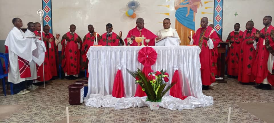 En ce mardi saint, le 31 mars 2026 à Gbadolite dans le diocèse de Molegbe, Son Excellence Monseigneur Joseph MOPEPE, Évêque de Molegbe, a célébré sa première messe chrismale avec son presbyterium à la paroisse Saint Joseph-Ouvrier de Gbadolite à 9h30' (heure locale). Au cours de cette célébration eucharistique solennelle, où ont concélébré plus de 30 prêtres, il a consacré le Saint-Chrême et béni les autres huiles. Par ailleurs, c'est également au cours de ladite messe que les prêtres ont renouvelé leurs engagements sacerdotaux. Ils étaient tous réunis autour de l'Évêque pour symboliser la communion des prêtres avec leur Évêque dans l'unique sacerdoce dont il incarne la plénitude et l'unique ministère du Christ. Dans son homélie, le prélat a martelé sur deux points essentiels à savoir: l'importance capitale d'huile dans notre vie. L'huile est le symbole de la sagesse de Dieu. Comme la lumière brille pour faire disparaître les ténèbres, c'est ainsi que l'huile donne de l'éclat pour conduire les croyants vers le bonheur véritable et la lumière éternelle. L'huile en tant que force vivifiante, met en branle la foi des fidèles afin qu'ils rayonnent au milieu du monde. Ensuite, s'adressant aux prêtres, il a insisté sur le fait que le sacerdoce s'exerce dans le service, dans la communion ecclésiale avec le Saint-Père et surtout avec l'évêque de qui ils l’ont. Que règne entre eux, le souci du frère, le souci des fidèles, le souci de l’Église et du diocèse. Car le sacerdoce est un chemin pascal où ils sont appelés à donner Dieu en se donnant eux-mêmes. Le prêtre est un pont sur lequel le peuple de Dieu doit traverser pour atteindre l'autre rive. Il ne peut alors en aucun cas constituer un obstacle pour les fidèles en quête de la vie éternelle. Après la messe, pour lier l'utile à l'agréable, un repas fraternel a réuni les clercs, les religieux et religieuses ainsi que les laïcs autour de l'Évêque, signe de vivre-ensemble dans la Communion avec lui et autour de lui.