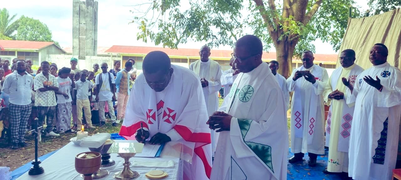 Le Père Modeste Mankubu Kasongo, Jésuite de la Province d'Afrique Centrale (Angola/RDC), a prononcé ses derniers vœux de religion au sein de la grande famille ignatienne ce mercredi 22 avril 2026, en la chapelle Saint Paul Miki d'Iniangi, située dans la province du Kwango en RDC. Alors que les Jésuites célébraient selon leur missel propre la fête de la Bienheureuse Vierge Marie, Mère de la Compagnie de Jésus, le Père Mankubu a fait une profession solennelle et publique de ses derniers vœux, scellant donc son incorporation définitive dans l'Ordre, et marquant un pas ultime et décisif dans sa vie de religieux. Les vœux, reçus par le Père Jacques Buensi, Socius du Provincial et célébrant de cette Eucharistie, a été assistée par plusieurs autres prêtres jésuites, venus rendre grâce à Dieu pour ce don que marque cet engagement libre et spontané du Père Modeste Mankubu.